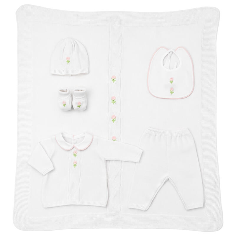 SET NEONATO MADE IN ITALY COMPOSTO DA COPERTINA, COMPLETINO, CAPPELLINO, SCARPETTE E BAVETTA