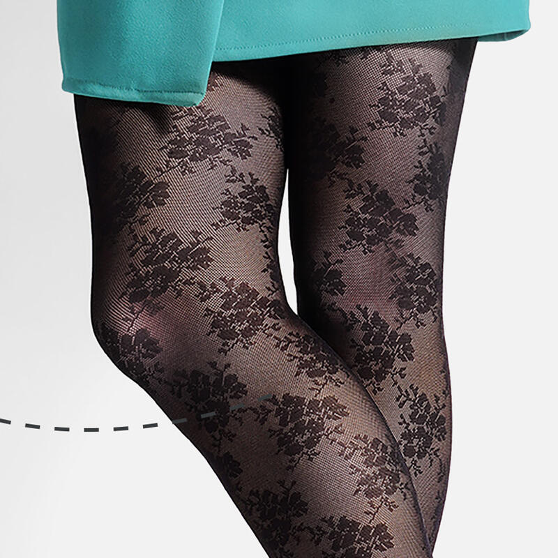 Collant moda donna elasticizzato con elegante motivo floreale ad effetto pizzo jacquard