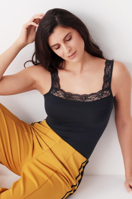 CANOTTA DONNA ELASTICIZZATA CON CARRE' IN PIZZO