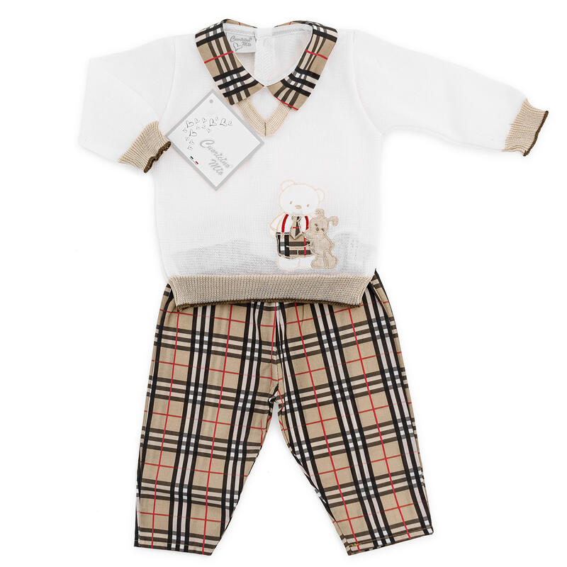 - COMPLETINO PRIMA NASCITA CON PANTALONE IN TESSUTO