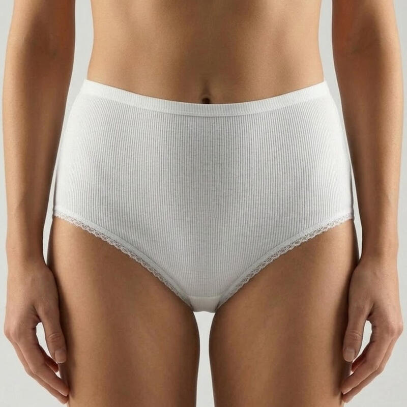 Culotta donna alta in puro cotone pettinato lavorato a costina con girogamba in pizzo art 125 Pizzo Henri.