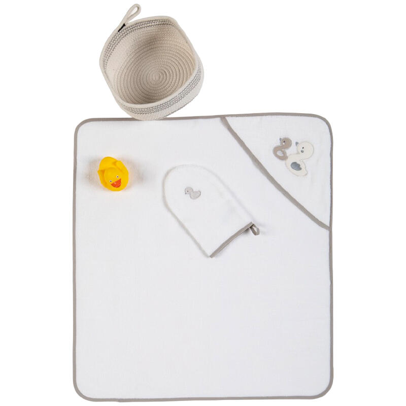 SET 4 PEZZI CON ACCAPPATOIO IN MICROFIBRA MANOPOLA E GIOCHINO